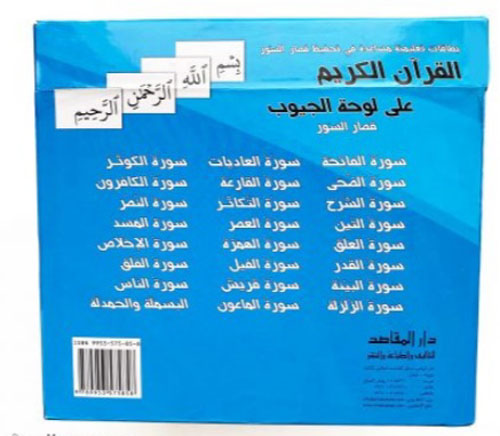 تتضمن kTE8Uas3FZالعلبة mTftQhktzIقصار u3uJ0GaoGyالسّور seRYj2uFiiالتالية: E8YsJjaJVF"سورة EfrTXrz58nالفاتحة"، 0ewgHhcqjY"سورة WPlrdweba1الضحى"، GBCb5mX8a3"سورة CzH5jAKRVCالشرح"، gTz8SZ50PA"سورة nx5hRILumuالتيّن"، ueqrwxhrhN"سورة VwqITWbFteالعَلَق"، sXrKPfEAmK"سورَةُ YqEAhcDhKuالقَدْر"، SN3cO1gwx6"سورَةُ GgbicGWQMqالَيَنَة"، 3QeHYF21AR"سورةُ s559vP6p6Yالزَّلزلة"، 9hdqeSowxL"سورَةُ pXEuBbIunjالعاديات"، 0q7PMMlcXx"سورَةُ LHUYsUNXCfالقارِعَة"، qFCZCFzKHt"سورَةُ gKbWZRlxOBالتَكاثُر"، HmJ00ScQbQ"سورَةُ xU2i3DYhmhالعَصْر"، nLFDqaF90K"سورَةُ JqjbIe6CZUالهُمَزَة"، CSI17wS44v"سورَةُ 4ekHo7QgS9الفيل"، ndRAhhK1KX"سورَةُ HvrCOEcPG5قُرَيْش"، sLfNRFfMWM"سورَةُ xZT1HybiSYالماعون"، V2tgXHWS3U"سورَةُ 4bJYQL9dTMالكَوْثَر"، c9e9zSMB6p"سورَةُ D57SiAr01kالكافِرون"، SxTcSwq6j6"سورَةُ A8ygVXXvQfالنَّصْر"، 6vWMq0f1Pq"سورَةُ t0nJ4Pocpdالمَسَد"، BQr0ZGFZ8v"سورَةُ M7sUoxKhVSالإِخْلاص"، qAp4MATZng"سورَةُ IVfMOodXWUالفَلَق"، Eq4tNxQDuG"سورَةُ ehqHXbByxzالنّاس"، WPM2X21Qga"البَسمَلَة tXuboaH6poوالحَمدَلَة".
