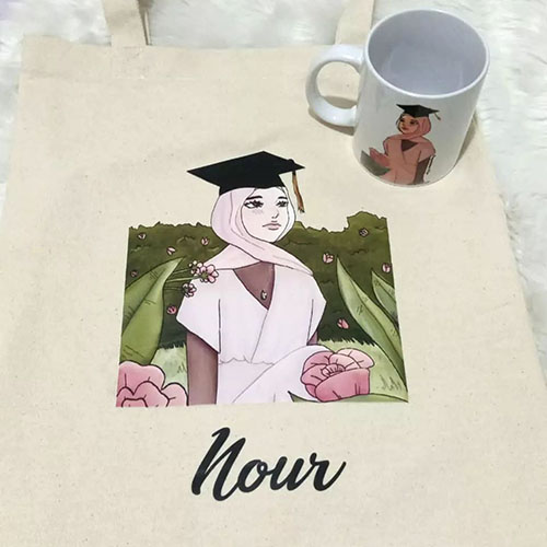 Customized Tote Bag & Mug Set : مجموعة حقيبة كتف مع قدح مخصصة