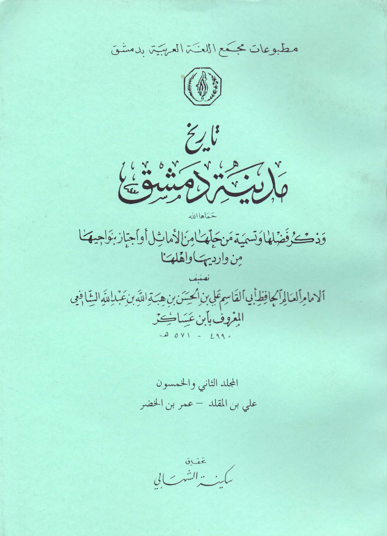 تاريخ مدينة دمشق وذكر فضلها وتسمية من حلها من الأمثال أو أجتاز بنواحيها من وارديها وأهلها ( المجلد الثاني والخمسون ) علي بن المقلد - عمر بن الخضر