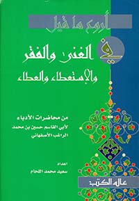 هذا الكتاب هو واحد من سلسلة "أروع ما قيل في" عمد المؤلف فيه إلى اختيار أروع ما قيل في "الغنى والفقر والإستعطاء والعطاء" واستقى المؤلف مادته من مراجع عدة وأهمها كتاب محاضرات الأدباء لأبي القاسم حسين بن...
