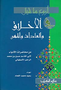 هذا الكتاب هو واحد من سلسلة "أروع ما قيل في" عمد المؤلف فيه إلى اختيار أروع ما قيل في "الأخلاق والعادات والمهن" واستقى المؤلف مادته من مراجع عدة وأهمها كتاب محاضرات الأدباء لأبي القاسم حسين بن محمد ال...