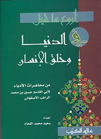هذا الكتاب هو واحد من سلسلة "أروع ما قيل في" عمد المؤلف فيه إلى اختيار أروع ما قيل في "الدنيا وخلق الإنسان" واستقى المؤلف مادته من مراجع عدة وأهمها كتاب محاضرات الأدباء لأبي القاسم حسين بن محمد الراغب...