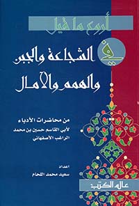 هذا الكتاب هو واحد من سلسلة "أروع ما قيل في" عمد المؤلف فيه إلى اختيار أروع ما قيل في "الشجاعة والجبن والهمم والآمال" واستقى المؤلف مادته من مراجع عدة وأهمها كتاب محاضرات الأدباء لأبي القاسم حسين بن م...