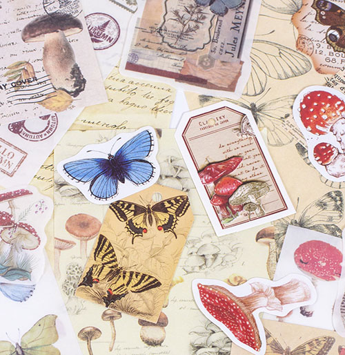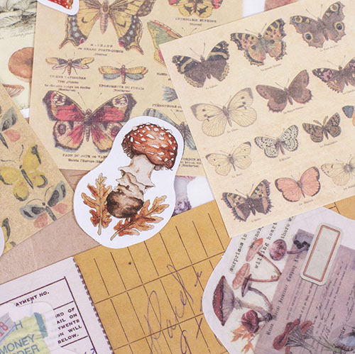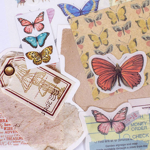 Vintage Butterflies Journaling Kit : مجموعة ملصقات وبطاقات الفراشات