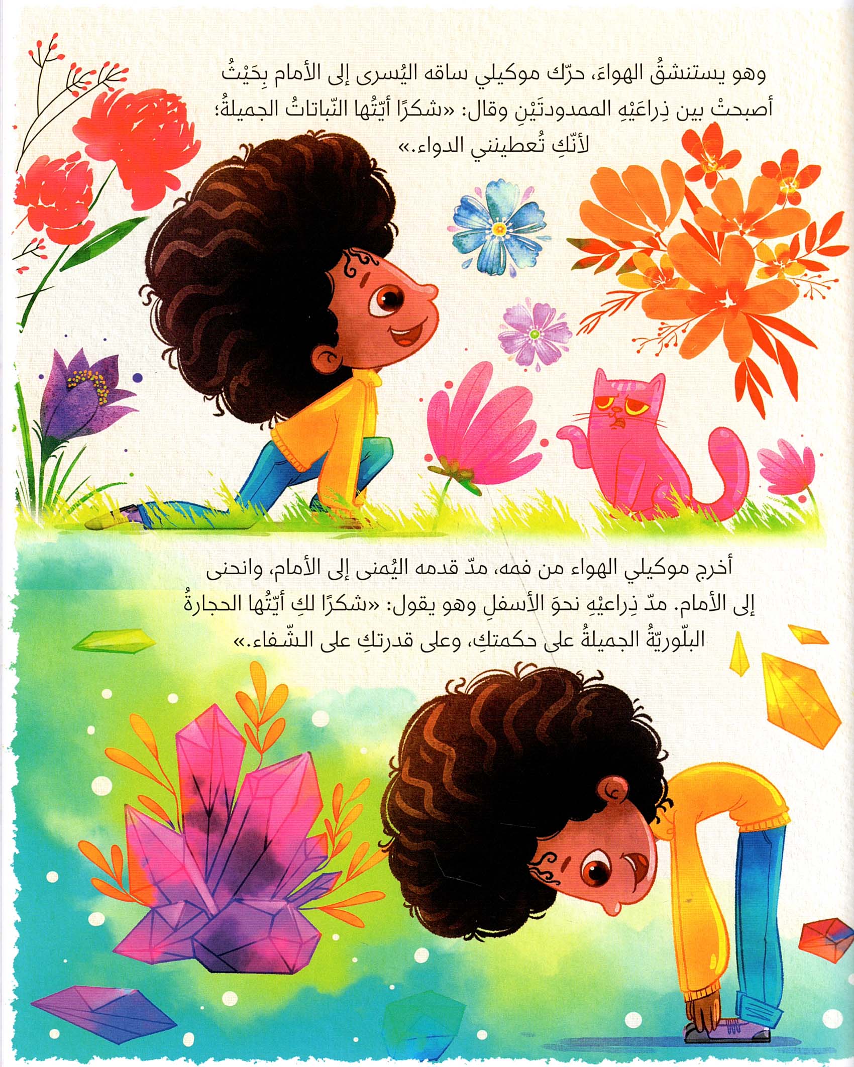 عندما يَتْبعُ أطفالُكم موكيلي (Mokili)، سيتعرّفون على أسس تمارينِ التّنفّس (البراناياما)، وتمارين للتّخلّص من التوتر، بالإضافة إلى 9 وضعيات لليوغا ...(الأساناس) لبناء قوة الجسم، والحفاظ على التوازن والمرونة.