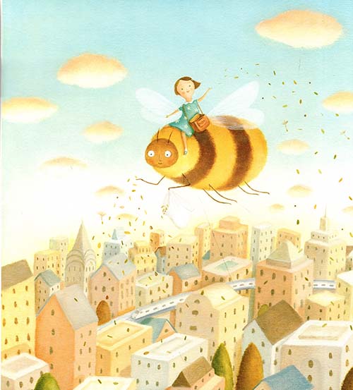 تتمحور فكرة القصّة في حب الطبيعة والأزهار والنحل، وهي قصة مستلهمة من موقف حقيقي، حيث كانت الرسامة في مرسمها عند مرور نحلة متهالكة ...بنافذتها، فقامت بتقديم محلول من الماء والسكر، لتتغذى به النحلة، وتنطلق من جديد إلى الطبيعة، فانطلقت مخيلة الرسامة إلى عالم متخيل، نمت فيه صداقة بينها وبين النحلة، ليحولوا مدينة قاتمة، إلى مدينة خضراء تملؤها الأزهار والفراشات.
