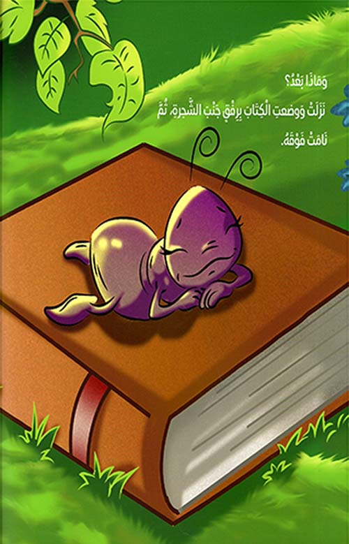 نبذة الناشر:"قِصَّةُ نَملَةِ تَجِدُ كِتاباً فَتُحِبُّهُ وَتَجْعَلُ مِنهُ صَدِيقاً فِي حِلَّها وتِرحالِها، وَيَصِفُ لنا الكاتِبُ بِأُسلُوبٍ مُمْتِعٍ مُغامَراتِها رِفْقَةَ الكِتابِ الَّذي أَصْبَحَ مَلاذَها، فَهُوَ بَيتُها حِينَ إِرادَةِ النَّومِ، وَهُوَ قَارِبُها عِنْدَ عُبورِ النَّهْرِ، كَما أَنَّهُ خَيمَتُها الَّتِي تَحْتَمِي بِها عِنْد نُزولِ الْمَطَرِ.