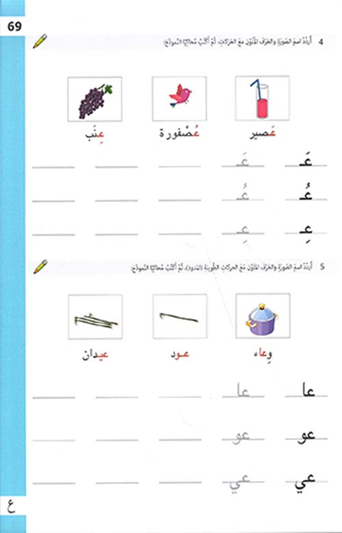 - كتاب يهدف إلى تعليم الحروف والمفردات والأصوات والكتابة، الكتاب يشتمل على 28 حرفا، 364 صورة، 364 كلمة.