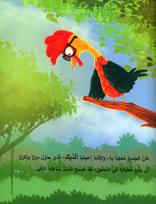 نبذة الناشر:كان صديقنا الديك معجباً جداً بالنسر صاحب الأجنحة الكبيرة، وبأسلوبه في الطيران، وأراد أن يكون مشهوراً مثله، فقرر أن يقلده بالطيران، فهل سينجح الديك؟