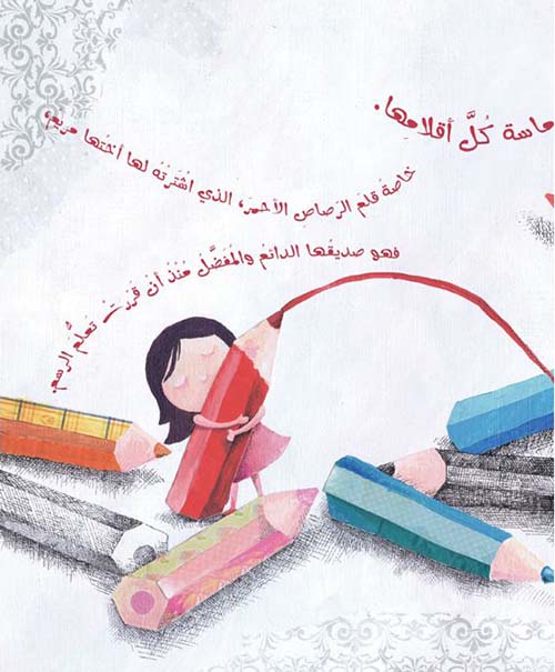 وصادف قرب عيد ميلادها فطلبت من عائلتها أن يقدموا لها علبة جميلة لتجعلها منزلاً للقلم الأحمر وأقلامًا ملونة لتكون عائلته. ...وصارت تستخدم قلمها الأحمر بحرص كي لا يصغر أكثر.