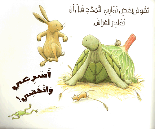 نبذة الناشر:الأَرْنَبُ مُتَشَوِّقُ دَوْماً لِلإِنطلاَقِ، يَغدُو طوالَ النَّهار، بَيْنَما تَقُومُ السُّلَحْفاةُ بِأَقصى جُهْدِها لِلِّحاقِ بِهِ، وَلَكِنْ عِنْدَها يَسْتَعِدُّ الأَرْنَبُ لَقِصَّةِ ما قَبْلَ النَّوْمِ الَّتي تَقْرَأها السُّلَحفاةُ لَهُ، فَهوَ لا يُحُّب العَجَلَةَ، إنما يُحِبُّ التَّريُّثَ لِمُشَاهَدَةِ الصّوَرِ كُلِها فَهَلْ يَصِحُّ التَّعجُّلُ في الأمُورِ كُلِّها؟...