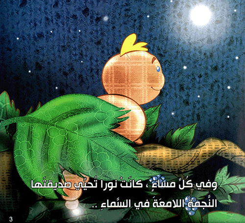 نبذة الناشر:قصَّة يرقة مُضيئة تغضب لأنَّ النجوم اختفت، لتكتشف أنَّها هي تضيء كالنَّجمة. الهدف من هذا القصَّةِ رفع الثِّقة بالنفس، فقد يكون لدى الإنسان جوانب إيجابيَّة كثيرة لا يَراها.