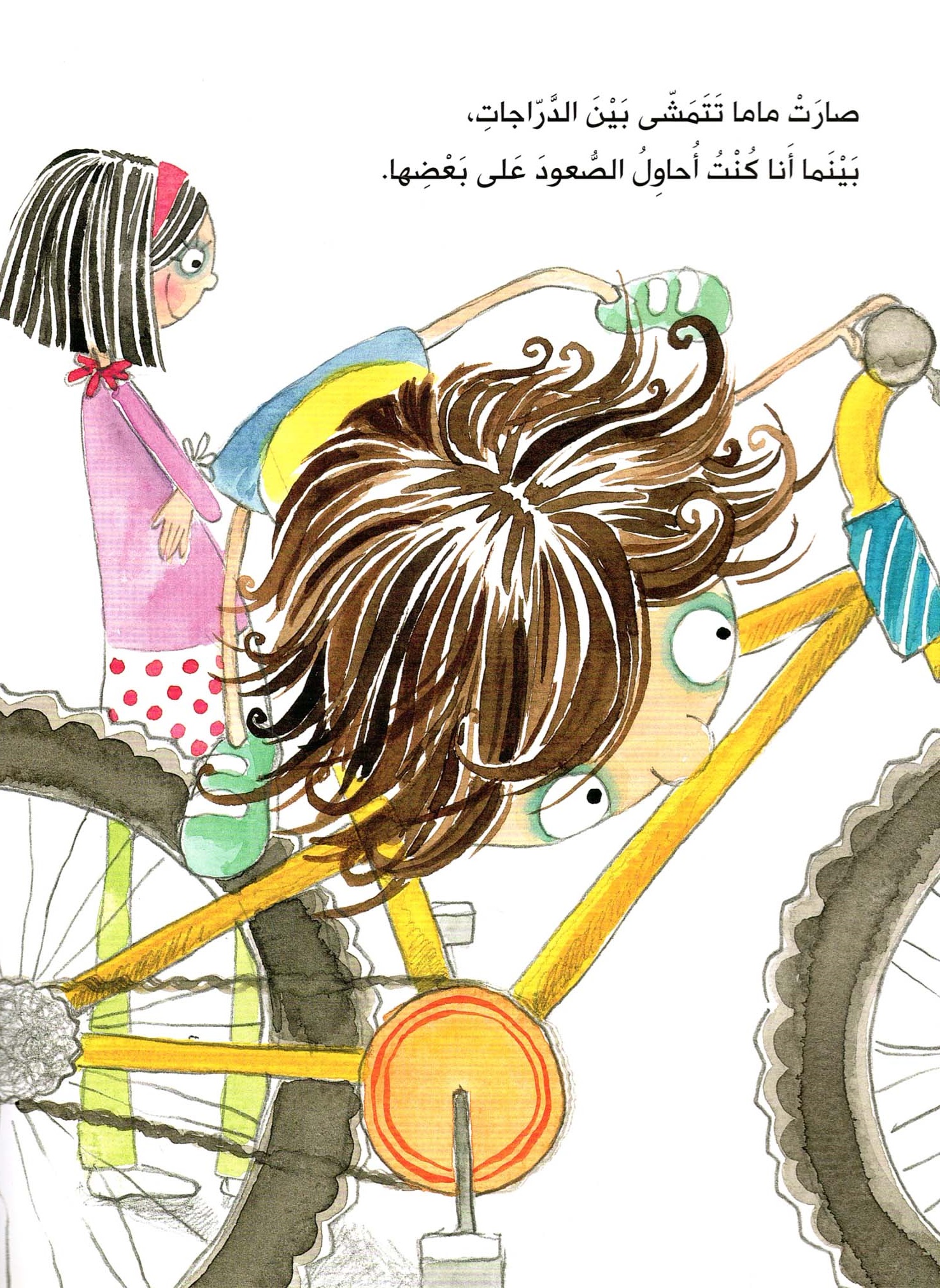 يركب رشيد الدراجة بمساعدة أمه، وتبقى بجانبه ممسكة بها كي لا يقع، لكن بعد عدة تجارب، تبتعد عنه، وينطلق هو دون أي مساعدة...