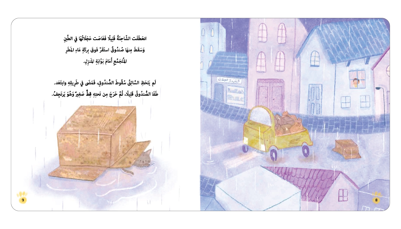 نبذة الناشر:"في ليلة ممطرة، وبينما كان خالد ينتظر والده قرب النافذة، لمح صندوقًا يسقط من شاحنة قديمة، ثم خرج من تحته قط صغير.