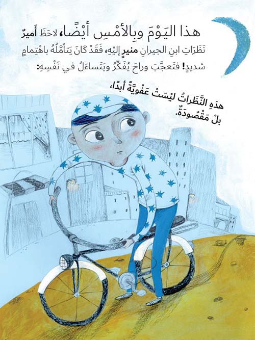 نبذة الناشر:“منير ودرّاجة أمير” يحكي قصة مشوقة عن أمير الذي يلاحظ نظرات منير لدراجته الجميلة. تسلط القصة الضوء على أهمية الاهتمام بمشاعر الآخرين ومشاركة الفرح معهم. من خلال أحداثها، يتعلم الأطفال قيمًا مثل العطاء، التعاطف، وحب التعاون. الكتاب مكتوب بلغة مبسطة ويتميز برسوم ملونة جذابة، مما يجعله مناسبًا للأطفال، ويساعدهم على ...فهم القيم الإنسانية بطريقة ممتعة ومشوقة. إقرأ المزيد