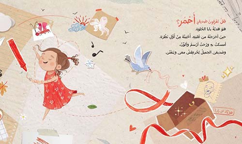 قصة لطيفة وناعمة عن صداقة حقيقية بين الطفلة وقلمها الأحمر الذي ترسم به في كل مكان وتحزن أنه يصغر ويصغر.