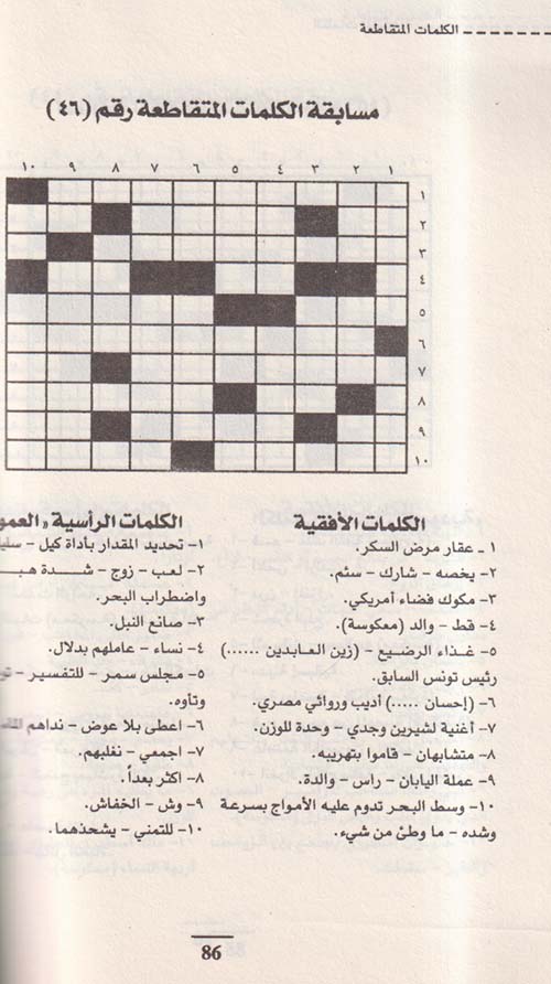 نبذة الناشر:تعتبر الكلمات المتقاطعه من أحب العموميات التي تهدف لإثراء المعلومات وتجديدها وتنشيط الذهن . وفي هذا الإصدار مجموعه متنوعة من أحدث مسابقات الكلمات المتقاطعه المتوسطه المستوى والتي تناسب جميع المستويات التعليميه وهي تأخذك عزيزي القارئ في رحلة رائعه عبر المعلومات في مختلف المجالات في التاريخ - الجغرافيا - العلوم - ...السياسة - الطب - الفن - اللغه العربية - الاختراعات و أشهر المخترعين - في عواصم البلدان وأشهر الاماكم السياحية بها - في العملات المختلفه للدول والشعوب . إقرأ المزيد