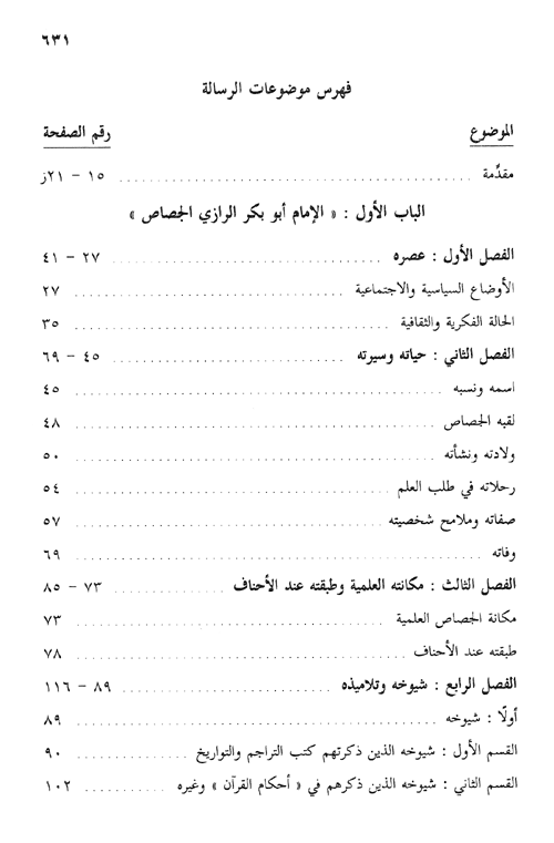 وبالعودة لمضمون هذه الدراسة نجد أن المؤلف قد ابتدأها بدراسة وافية عن الإمام الجصاص، ألقى فيها ضوءاً كاشفاً على العصر الذي عاش فيه، والذي عاصر فيه عدداً من خلفاء الدولة العباسية بدءاً بالمقتدر بالله الذي حكم بين عاني 295-320هـ، وانتهاءً بالطابع لله الذي حكم بين عامي 363-381هـ، ومن خلال ذلك بين المؤلف خصائص هذا العصر سياسياً واجتماعياً وعلمياً واثر ذلك على الإمام الجصاص.