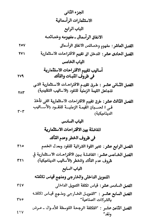 في الجزء الأول تم توصيف وتحليل المركز المالي للمنظمة والتخطيط المالي وقياس الكفاءة الإدارية في استخدام الأحوال وإدارة الأحوال، وتحليل العائد المحقق ومكوناته، وفي الجزء الثاني تم التعرض للاستثمارات الرأسمالية بالمنظمة والمدخل لتقييم الاتفاق الرأسمالي والجدوى الاقتصادية للمشروعات الاستثمارية، وتقييم هذه المشروعات في ظرف التأكد وعدم التأكد، ومدخل التشكيل والتنويع للاستثمارات بهدف تعظيم العائد وتدنيه المخاطر، بالإضافة إلى مداخل تحديد الحد الأدنى العائد المطلوب والذي يستخدم كمعيار في دراسات الجدوى (تكلفة الأموال). أما الجزء الثالث فيتناول التمويل قصير الأجل لإدارة النقدية والذمم والمخزون. إقرأ المزيد