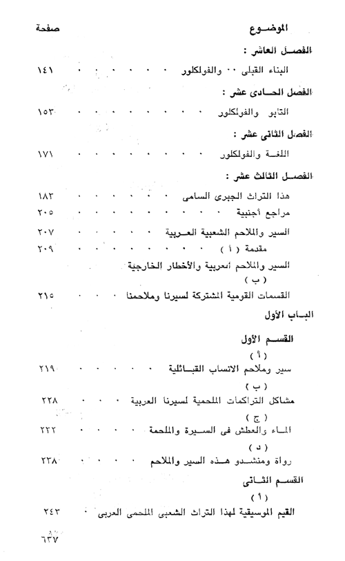 أما الكتاب الثالث: فيختص بالسيرة الهلالية أو إلياذة العرب، ودور الهلاليون في التعريب وفي إعادة صياغة وتشكيل البنيان السكاني للشرق الأوسط القديم.