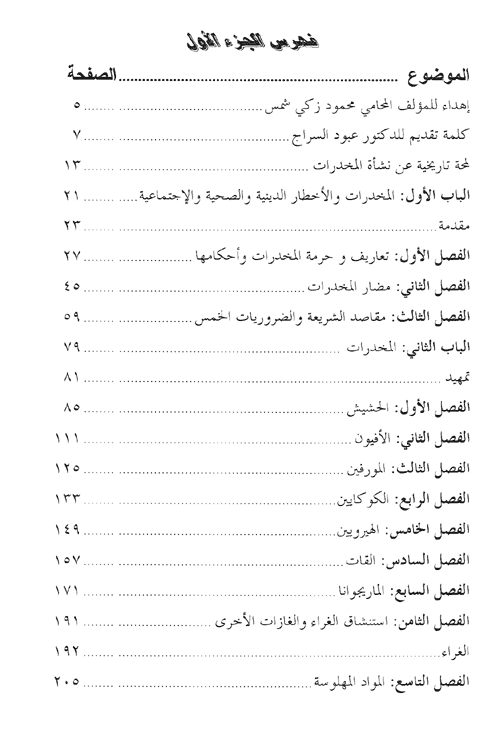 وقد استعرض المؤلف في الباب الأول من هذا الكتاب تاريخ ...المخدرات ونشأتها ، ومضارها الصحية والاجتماعية والاقتصادية، وموقف الشريعة الإسلامية منها، ثم انتقل في الباب الثاني إلى شرح طبيعة المواد المخدرة بذاتها ليبين مصادر الحشيش والأفيون والكوكايين والقات، وأنواع المؤثرات العقلية أو المواد النفسية التي انتشرت في العقود الأخيرة من هذا القرن مع انتشار الصناعة الدوائية وتوسعها.
