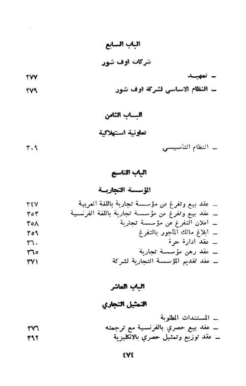 نبذة نيل وفرات:هذا هو الجزء الأول من كتاب نماذج وعقود واتفاقات، وهو مخصص للحديث عن أنواع الشركات التجارية التالية (التضامن)، المحدودة المسؤولية، التوصية البسيطة، المساهمة، القابضة (الهولرنغ) الأوف شور، الجارية على المؤسسة التجارية الاستهلاكية، كما وفيها تصدي لعقد التخيل التجاري، وعقد بيع وشراء مكتب وموقف سيارة وشاليه، وعقد صيانة أبنية، وتصنيع ...ألبسة جاهزة، وخطة البحث اقتضت من المؤلف إعطاء لمحة موجزة عن كل شركة أو عقد، وعن القواعد الجوهرية التي تحكمها، والمسائل الشائكة التي تصادف تنظيمها، فأوضح هذه المسائل من الناحية الفقهية والقانونية وأدرج المواد القانونية التي تحكم شركة، كما وأدرج نموذج تطبيقي عملي عن كل شركة. إقرأ المزيد
