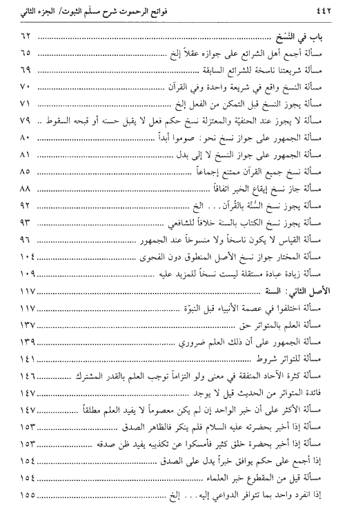 نبذة نيل وفرات:إن الفقه وأصوله من أشرف العلوم لأنه جامع بين العقلي المحض والنقلي المحض، فهو يأخذ من هذا ويأخذ من هذا، فينتج عنه الاجتهاد في التشريع الذي يقلده كل من لا يتمتع بالقدرة على الاستنباط من عوام المسلمين وخواصهم الذين لم يبلغوا رتبة الاجتهاد. وهذا الكتاب "فواتح الرحموت بشرح مسلم ...الثبوت" هو من الكتب التي لاقت قبولا واستحساناً لدى العلماء والدارسين للفقه وأصوله وذلك لما يتميز به من سلاسة في الشرح وشموليته في الاستقصاء. أما صاحب المتن "مسلم الثبوت" فهو القاضي محب الله البهاري نسبة الى بهار، وهي مدينة عظيمة شرقي بورب بالهند، أخذ أوائل الكتب المدرسية من مواضيع شتى، ثم انقطع إلى حوزة درس القطب الشمس آبادي فصار بحراً من العلوم. نال منصبا جليلاً عند رحيله الى الديار الهندية والمنصب هو توليه صدارة ممالك الهند كلها. من مؤلفاته:"سلم العلوم في المنطق"، ومسلم الثبوت" في أصول الفقه وهو الكتاب المشروح بين يدي القارئ، والجوهر الفرد في مسألة الجزء الذي لا يتجزأ"، وهذه الثلاثة مقبولة ومتداولة في مدارس العلماء. أما صاحب الشرح فهو الأنصاري الكنوي، محمد عبد العلي بن محمد نظام الدين أبو العياش، بحر العلوم، السهالوي الأنصاري اللكنوي الهندي: عالم بالحكمة والمنطق، حنفي، له كتب منها: "تنوير المنار" فقه، و"شرح السلم" منطق، و"فواتح الرحموت شرح مسلم الثبوت" للبهاري في أصول الفقه، وحاشية على شرح الصدر الشيرازي للهداية". والكتاب والشرح إنما هما من الأهمية بمكان، إذ يكشفان عن إبداعات علماء المسلمين في بلاد الهند.نبذة الناشر:كتاب في أصول الفقه شرح فيه المؤلف كتاب مسلم الثبوت للبهاري، وهو من الكتب الهامة التي لاقت استحسانا لدى العلماء والدارسين، وقد جاء الكتاب في جزئين. أمّا الجزء الأول فقد اشتمل على: مقدمة فيها ترجمتان للبهاري، صاحب مسلم الثبوت،وللأنصاري اللكنوي صاحب فواتح الرحموت، ،ثم خطبة الكتاب، وبعد المقدمة تطالعنا ثلاث مقالات الأولى في المبادئ الكلامية والثانية في الأحكام، والمقالة الثالثة في المبادئ اللغوية. أما الجزء الثاني فقد اختصّ بالكلام على الأصول الأربعة:الكتاب والسنة والإجماع والقياس والمسائل المتعلقة بكل أصل من هذه الأصول، وفي نهاية المجلد خاتمة في الاجتهاد وبعض المسائل المتعلقة به إقرأ المزيد