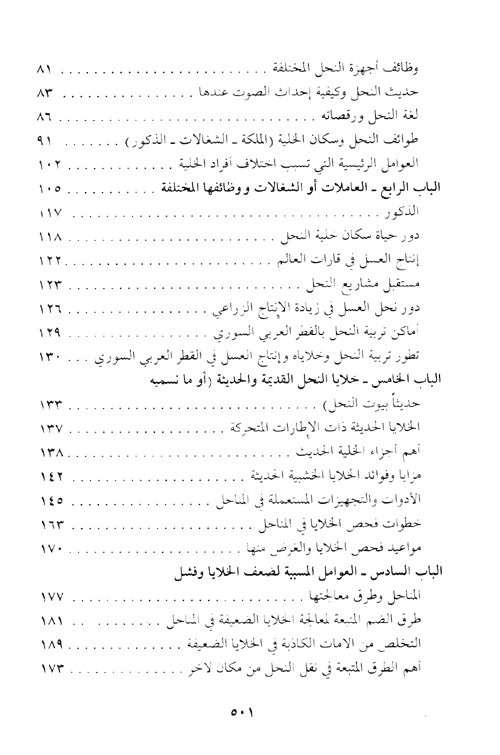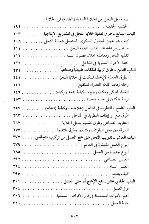 نبذة نيل وفرات:هذا كتاب يجمع بين طياته الكثير الكثير عن الطرق الحديثة في تربية النحل. وتقسيم وضم ومعالجة ضعف الخلايا وعن علوم التغذية والطب وحتى في المعالجة والتدبير وعلم النفس، فضم بين طياته العلم والخبرة العملية والعلمية والخبرة الفنية والمستوى العلمي واللغوي الذي يتناسب مع مستوى الطلاب الفنيين، ومربي النحل وهواتها، ...بشكل يمكنهم من استيعابها وتطبيقها بصورة فعلية، وإتباع عمليات العناية بطرق التربية، وزيادة أعداد المناحل، وإدخال الخلايا الخشبية الحديثة، وتأمين أدواتها اللازمة للعناية بالطوائف صيفاً وشتاءً من حيث تغذيتها ونظافة الخلايا وحمايتها، وهذا كله يزيد من عطاء المحل، ويضاعف من إنتاج المناحل.نبذة الناشر:ماذا عن النحل والعسل في التاريخ؟ ما هي الشروط الواجب إتباعها عند إقامة مشاريع النحل؟ ما هي وظائف العاملات؟ ماذا عن العوامل المسببة لضعف الخلايا وفشلها؟ ما هي طرق تغذية خلايا النحل في المشاريع الإنتاجية؟ ما هي طرق تربية المملكات؟ ماذا عن جمع الإنتاج؟ ما هي فوائد لسع النحل؟ هذه الأسئلة هي مدار البحث في هذا الكتاب مع التفصيل في ذلك. إقرأ المزيد