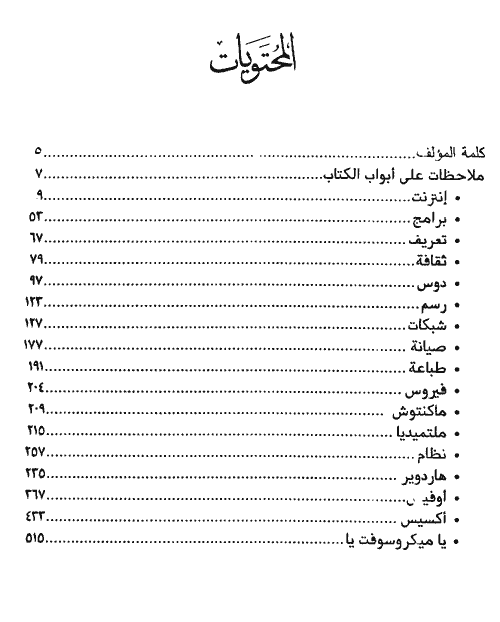 نبذة الناشر:لقد أصدرنا منذ عدة سنوات كتاب 1001 سؤال وجواب في الكمبيوتر ونال استحسان القراء. واليوم طورناه وأخرجناه بهذا الشكل الذي نتمنى منه الفائدة لجميع مستخدمي الكمبيوتر في سائر بلدان العرب. لقد تم تقسيم مواضيع الكمبيوتر بأحرف أبجدية، ومن هذه المواضيع الإنترنت والبرامج والشبكات والصيانة والدوز والهاردوير والويندوز والأوفيس، وتم إفراد ...باب خاص بأكسيس رغم وجود جزء منها في باب أوفيس إلا أن أكسيس من أعقد بنود أوفيس. وقد تلاحظ أن عدد قليل من مستخدمي أوفيس لا يعملون على أسس رغم شطارتهم في وورد واكسل وبوربوينت. كما أنه يوجد 24 سؤال زيادة لتعويضكم عن الأسئلة المكررة أو التي لا تعجبكم. يوجد في نهاية الكتاب جزء خاص عن منتجات شركة ميكروسوفت العالمية كالأوفيس والويندوز. إقرأ المزيد