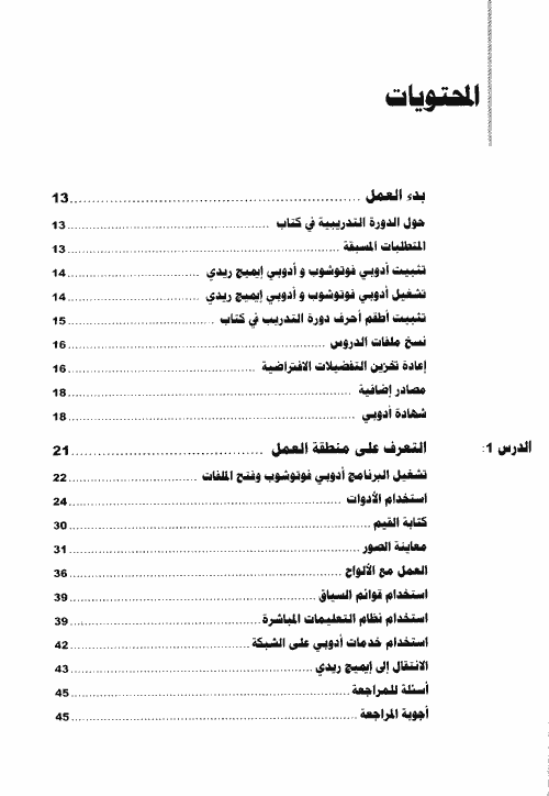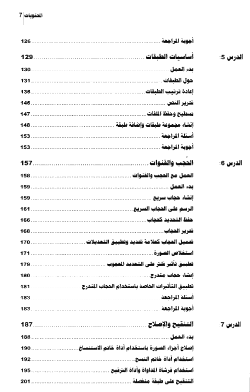 "أدوبي فوتوشوب 7.0 - دورة تدريب في كتاب" يتضمن ثمانية عشر درساً. وهذا الكتاب يغطي أساسيات تعلّم استخدام فوتوشوب، كما يحتوي على عدد لا يحصى من الأفكار والنصائح والتقنيات التي تساعدك على أن تصبح بسرعة محترفاً في استخدام فوتوشوب.