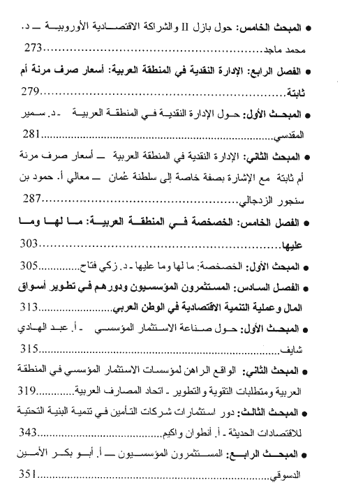ويأتي هذا الاهتمام الخاص مع أنواع المخاطر المتزايدة والتنافس العالمي، خاصة مع تدهور واضح للأسهم المالية وانحدار كبريات الشركات العالمية السريع، والذي لم يكن متوقعاً، وانعكاسه على منطقة الشرق الأوسط. وفي مواجهة المواضيع البارزة، كان الحديث عن مستلزمات الرقابة المصرفية مع تزايد المتطلبات الرقابية في الوقت الحاضر ضمن نظام عام موحد وسليم، يعتمد على التصنيفات العالمية سيما التصنيفات الائتمانية منها، لسهولة مراقبتها ضمن فترات زمنية، أما بالنسبة للخصخصة في المنطقة العربية، فقد أكد الحضور بأن الخصخصة أصبحت ظاهرة عالمية، يتم تنفيذها في الدول المتقدمة والنامية على حد سواء. وإن الخصخصة تشكل عنصراً مهماً في الإصلاح الهيكلي والسياسات الاقتصادية التي تهدف إلى تقليل التدخل الحكومي في النشاط الاقتصادي، حيث يقترن عادة مع تباطؤ النمو الاقتصادي والإصلاح الهيكلي.