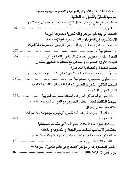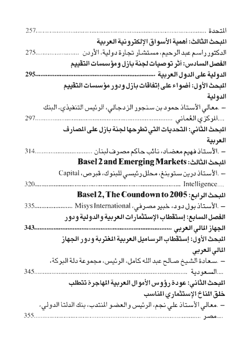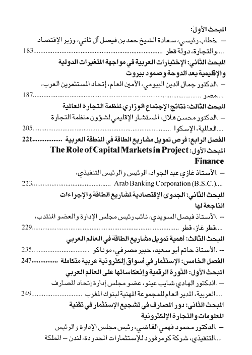 هذا وتحدث المؤتمر عن موضوعات إقليمية وعالمية هامة جداً، أولها الاقتصاد العالمي بعد أحداث 11 أيلول والتطورات الاقتصادية والمصرفية المصاحبة وتأثيرها على المنطقة العربية، وثانيها التجارة العالمية مع بدء جولة الدوحة، والثالث حول فرص تمويل مشاريع الطاقة في المنطقة العربية، والرابع حول الاستثمار في أسواق إلكترونية عربية متكاملة. أما الموضوع الخامس فهو حول أكثر توصيات لجنة بازل ومؤسسات التقييم الدولية على الدول العربية، فيما كان الموضوع السادس حول استقطاب الرساميل العربية المغتربة ودور الجهاز المالي العربي. وفي الموضوع السابع ركّز المؤتمر على تحرير الخدمات المالية وإزالة العوائق. والموضوع الثامن والأخير كان حول تعامل القطاع المصرفي العربي مع القواعد الدولية الخاصة بمكافحة تبييض الأموال وأموال الإرهاب.
