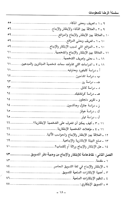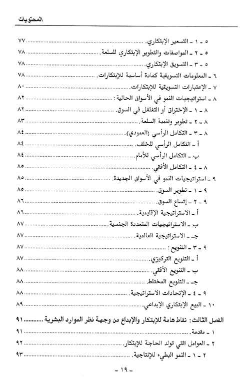 نبذة المؤلف:يقدم هذا الكتاب الموضوعات المعاصرة للابتكار والإبداع وكيفية بناء الثقافة والشخصية والعقلية الابتكارية, وعملية صنع البيئة الابتكارية. نقاط هامة للابتكار والإبداع من الناحية التسويقية واعتبار المعلومات التسويقية كمادة أساسية للابتكارات. نقاط هامة للابتكار والإبداع من ناحية الموارد البشرية وتحقيق نوعية حياة عمل جيدة وبحوث متميزة. ودور مراكز البحوث والمعارف في ...الابتكار والإبداع و التعاون بين الصناعة والجامعات. قيادة المنظمة ودورها في الابتكار و الإبداع ووسائل التأثير القيادي دور فرق العمل في الابتكار والإبداع ومدى أهمية الفرق الابتكارية وأفكارها وخواطرها. تأهيل وتنمية الأفراد الابتكاريين الإبداعيين, وخصائص الإداريين المبتكرين. التفكير الإبداعي وتقاناته, وقواعده وطرائقه, وكيفية تنميته وتطويره. التدريب على الحلول الإبداعية للمشكلات والتعاون الذهني. الابتكار والإبداع في مفاهيم الجودة الشاملة وجوانب التفكير الإبداعي فيها. ابتكار وتطوير السلع الجديدة ودورة حياتها وعوامل تطورها وأسباب فشلها. أثر الإبتكار على سلوك المستهلكين وخصائص المستهلك المبتكر. المراسيم الناظمة للإبتكار والإبداع في سوريا. إقرأ المزيد