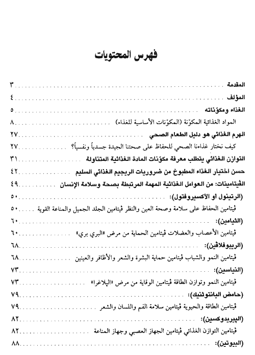 نبذة الناشر:يتناول هذا الكتاب أسس الغذاء السليم ومكوناته ومصادره، فالغذاء الصحي هو مفتاح الصحة الجسدية.