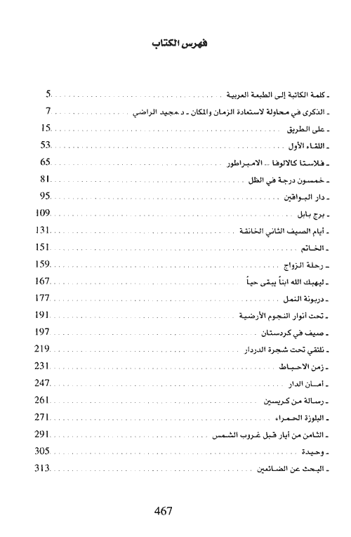 نبذة نيل وفرات:إن فتاة بجسارة كالالوفا وعزمها على خط مصيرها بنفسها تستحق اهتماماً استثنائياً. لقد قررت وهي في عشرينات عمرها، وفي عشرينات قرننا الذي يطوي صفحاته الأخيرة، أن تتوجه إلى الشرق من دون الركض وراء سراب النزعة الغرائبية. إنها ذاهبة إلى الشرق لتدريس أمراضه ولتكون عوناً له، وليس حباً في غرابته ...أو توقاً إلى وطن "ألف ليلة وليلة" وانجراراً وراء سحره، كما فعل عدد من أدباء الغرب، ولا طمعاً في ثرواته الدفينة كما فعل ويفعل المستعمرون منذ نهاية حركة الاستكشاف الجغرافي في القرن الخامس عشر وما تلاه حتى هذه الأيام. لقد هزأت بالصعاب، ولم تكن قليلة أو هينة. وكانت من الثقة بالنفس بحيث نفذت حلمها فأقامت لها "أول مستوصف تشيكوسلوفاكي" في بغداد منتصف العشرينيات. خالطت الناس وعاشت في وسطهم، وقدمت المساعدة الطبية لهم، وابتهجت لأن البغداديين تقبلوها واحدة منهم، فلم تعان الاغتراب. وفي الوقت نفسه عرفت مجتمع النخبة المثقفة العراقية وكذلك صفوة مجتمع الأجانب الصغير والمغلق، والذي حذرت منه فيما بعد، غير أنها تزوجت منه، تزوجت ذلك الإيطالي ذا الأصل النبيل، المحب للموسيقى والعارف بكل شيء والذي بدا للوهلة الأولى مترفعاً. وعلى شيء غير قليل من الغطرسة. كانت معرفتها باللغة العربية قد ميزتها عن الآخرين، كما أن تفهمها لطبيعة المجتمع العراقي وتقاليده في بداية القرن قد هدم أمامها آخر السدود، وهي تعي أهمية ذلك فتقول للدكتور ياروسلاف سليبكا في صيف 1962، وكان من المقرر أن يسافر في خريف ذلك العام إلى بغداد للعمل في رئاسة معهد التشريح المجهري: "تقولون أن هناك خمسين أو ستين من أبناء بلدنا؟ هذا شيء ممتاز. غير أن الإنسان ينبغي أن لا يحصر نفسه في عنين الأقلية. هذا ما فعله الإنكليز في العراق، ولهذا لم يستطيعوا مطلقاً فهم هذا البلد. ينبغي أن لا يحصر الإنسان نفسه في عنين الأقلية. هذا لب الموضوع. كانت كالالوفا لا تطيق نظرة التعالي لدى الأوروبيين إزاء المجتمع العراقي. لقد نجحت المؤلفة في تصوير أجواء المجتمع البغدادي في منتصف العشرينيات وحتى الثلاثينيات . ويحس القارئ روعة هذا الوصف ودقته في أماكن عديدة من الرواية وبخاصة الأجزاء الأولى منها. وهذا يعود بالدرجة الأساس إلى وصف الطبيبة كالوفا لهذه الأجزاء، ناهيك عن تصويرها بالكلمة واللمحة والموقف، وخصوصاً وصفها للجو الملحمي في الكاظمية في أثناء مرور موكب عاشوراء والتقاطها لتقاليد الطائفة الشيعية.نبذة الناشر:من خلال الصياغة الأدبية لمصير الطبيبة التشيكية (في بيت البرزنجي) ذكرت إيلونا بورسكا القارئ وعرفته بشخصية المرأة التشيكية الفريدة التي أصبحت بمجمل حياتها ونظرتها إلى العالم وعزيمتها التي لا حدود لها مثالاً كبيراً مؤثراً ليس في أبناء جيلها فحسب ، وإنما أيضاً في الأجيال اللاحقة . فإن قصة حياة الطبيبة فلاستا كالالوفا-دي لوتي المولودة في برنارتيتسه قرب مدينة طابور ، تمثل شهادة على المرأة الشجاعة والجديرة بالاعجاب التي سافرت وحيدة إلى الشرق خلال سنوات العشرينيات وأسست في بغداد مستوصفاً تشيكوسلوفاكياً. لقد عرفت الطبيبة فلاستا كالالوفا القيم التي تستحق أن يعيش الإنسان من أجلها ولم تستطع أن تقف موقف المتفرج تجاه الآخرين وتجاه مشكلاتهم والصعوبات التي تواجههم ، بل حاولت في حدود إمكاناتها أن تعمل شيئاً من أجلهم. وفي حدود تلك الإمكانات ، عملت في بعض الأحيان ما يستعصي على التحقيق . أدركت أن معنى الحياة يكمن في العمل من أجل الآخرين ، وكرست حياتها لهذا الهدف. وحين واجهت هي بالذات مصيرها المأساوي وخاصة المصير الدرامي لأسرتها بكاملها ، لم تتوقف عن النضال ضد الشرور ووهبت الأمل للجميع حتى الرمق الأخير من حياتها ، حين فارقتها الحياة في مستشفى مدينة بيسك عام 1971.وفي سياق هذا الكتاب يوجد العديد من العناوين نذكر منها: اللقاء الأول ، فلاستا كالالوفا ...الامبراطور ، رحلة الزواج ، صيف في كردستان ، البلوزة الحمراء ، البحث عن الضائعين ، أيام عكرة ، في زيارة ميخائيل ، حب