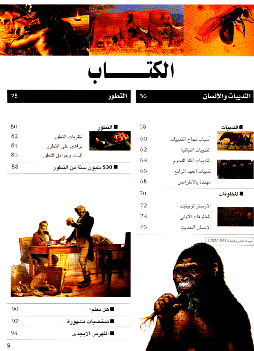 وفي هذا الكتاب من سلسلة "شبابنا" إثباتات على خطأ هذه النظرية، وفيها أيضاً إطلاله مسوغة تعني بتتبع ظهور الكائنات الحية على وجه الأرض، كما وفيها مغامرات عجيبة تلقي الضوء على أسرار الكامنة خلف انقراض بعض الحيوانات وغزو آخرين للقارات وانتشارهم فيها، كما وفي الكتاب وقفه تأملية تعني بالكشف عن الحيوانات الأولى التي سكنت الماء واليابسة...نبذة الناشر:موسوعة Larousse موسوعة عامة بالمواضيع من عدة أجزاء، تجول في ميادين المعرفة شرحاً وتوضيحاً. معلومات دقيقة وإخراج مشوق تجعل منها رفيقاً مثالياً لتحضير دراسة أو للإجابة عن تساؤلات عالم اليوم.