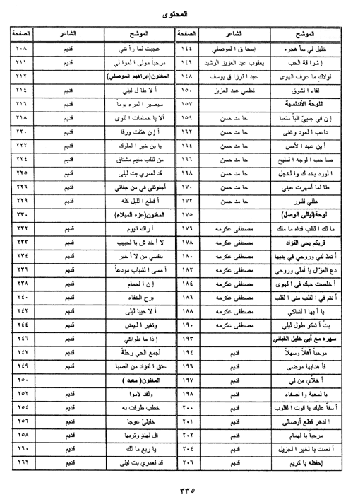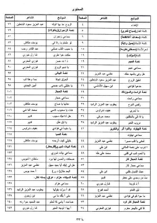 نبذة الناشر:الأستاذ عدنان أبو الشامات يقدم هنا توثيقاً لأعمال من تلحينه, قدمت في مجالات عديدة, تلفزيونية وإذاعية ومسرحية, معتمداً أساليب متعددة في التصنيف, ففي الموشحات أعتمد أسلوب التصنيف الذي ابتدعه كتاب (من كنوزنا) عبر ترتيب الموشحات في وصلات حسب المقام الموسيقي, تبتدئ كل منها بمعزوفة موسيقية على قالب السماعي, بينما ابتعد ...عن هذا الأسلوب في توثيق أعماله الأخرى, التي أتت في ترتيب لا يتصل بالمقام الموسيقي.