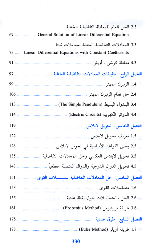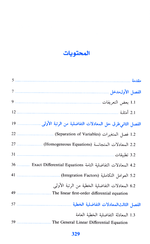 نبذة نيل وفرات:تحتل المعادلات التفاضلية مكانة جيدة بين فروع التحليل الرياضي لأنها تلعب دوراً كبيراً في حل الكثير من المعضلات الحياتية، وذلك لأن المعادلات التفاضلية تطبق في كل فروع المعرفة من علوم فيزيائية وهندسية إلى علوم الحياة والطب والاقتصاد والاجتماع. تم التركيز على الناحية النظرية في هذا لكتاب، ورغم ذلك لم ...تهمل الناحية التطبيقية، فالهدف هنا هو تقديم المفاهيم الأساسية لنظرية المعادلات التفاضلية ببعض النماذج، وتوضيح استخدام المعادلات التفاضلية في وصف وحل الظواهر الواقعية يعتبر هذا الكتاب مدخلا جيدا للمعادلات التفاضلية، فقد تم التعرض لمفهوم المعادلة التفاضلية وحل المعادلات التفاضلية من الرتبة الأولى ورتبا على، وتم التركيز على المعادلات التفاضلية الخطية وطرق حلها، بالمصفوفات موضوع تم التنسيق له، وتوضيحه توضيحه تاماً. تعرض أخير للمعادلات التفاضلية الجزئية وطرق حلها بشيء من التركيز والوضوح الذي لم يفقد الموضوع نظريته. رتبت الفصول بحيث تكون معتمدة على بعضها البعض، كما رتب كل فصل إلى بنود، وذيلت نهاية كل بند بمجموعة من التمارين، وفي آخر كل فصل وضعت مجموعة من التمارين تتعلق بكل مواضيع الفصل. إقرأ المزيد