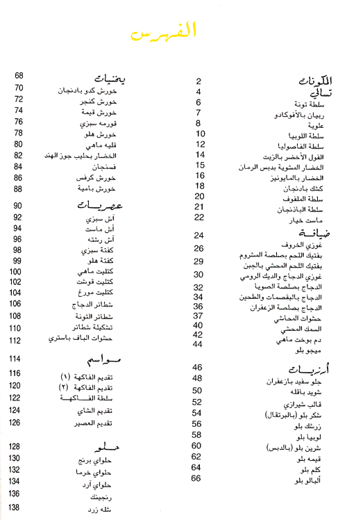 من هذا المنطلق اعتنت السيدة ..."نوال السيد" بإعداد هذا الكتاب الذي يحتوي على عرض لأشهر الأطباق الفارسية التقليدية اللذيذة، بدءاً بالأرزيات كجلو سفيد بازعفران، شكر بلو (بالبرتقال)، ألبالو بلو، ومروراً باليخنات كورش كدو بادنجان، وخورش كرفس، وخورش بامية، وانتهاءً بالحلويات الفارسية الأصلية، كحلو برنج، حلواي آرد، ورنجينك، وبين هذه الأطباق وتلك عرضت المؤلفة لطرق إعداد بعض العصريات والصلصات الفريدة وبمذاقها المميز والخاص ومن هذه نذكر الفول الأخضر بالزيت، الخضار المشوية بدبس الرمان، ماست خيار، آش سبزي، كفته هلو، كتليت مورغ، ماهي، حشوات الباف باستري، شطائر الدجاج، شطائر التونة، الدجاج باليقصمات والطحين، السمك المحشي، بفتيك اللحم المحشي بالجبن... كل ذلك وغيره كثير عرضت له المؤلفة من خلال الصورة الملونة والشرح المسهب الذي يطلع ربة المنزل على تفاصيل هامة تساعدها في تحضير الأطباق المشروح عنها وغيرها من الأطباق الفارسية. إقرأ المزيد
