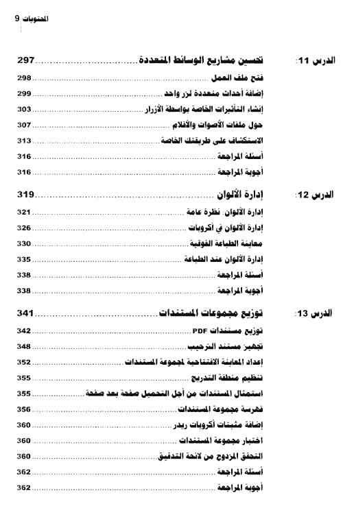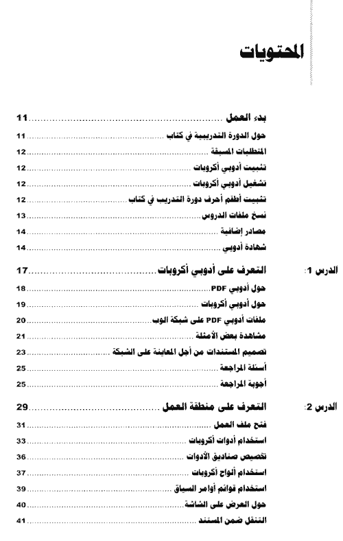 "أدوبي أكروبات 5.0-دورة تدريب في كتاب" يتضمن أربعة عشر درساً. وهذا الكتاب يغطي أساسيات تعلّم استخدام أكروبات ويحتوي على عدد لا يحصى من النصائح والإرشادات والتقنيات التي تساعدك على أن تصبح محترفاً باستخدام أكروبات.