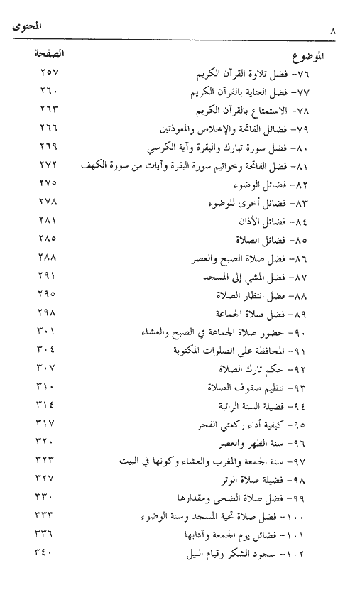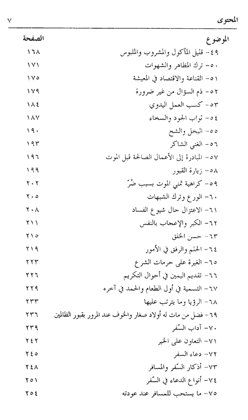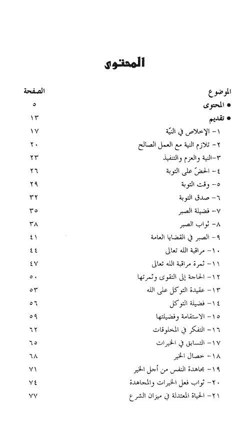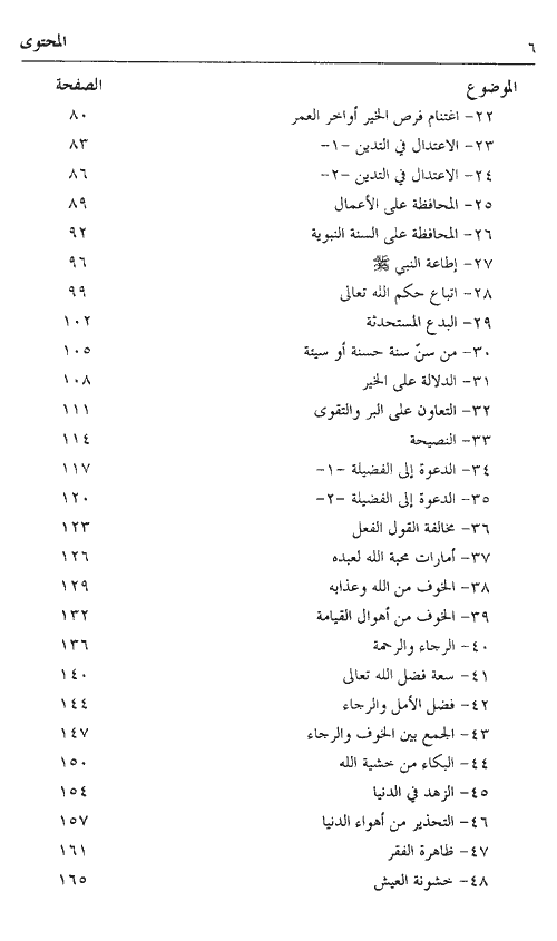 وكل موضوع من مواضيع هذا الكتاب يصلح درساً خاصاً أو عاماً، وخطبة جمعة، في مناسبات عامة أو خاصة، وفي مجتمع الرجال أو النساء. وفيه أيضاً فوائد كثيرة. والموضوعات في الأصل مستقاة من الكتاب النفيس للإمام النووي وهو (رياض الصالحين) الذي اشتمل على قراءة ألفي حديث (1898 حديثاً) وهي كلها أحاديث صحيحة أو حسنة، فلا موضوع ولا ضعيف فيها.