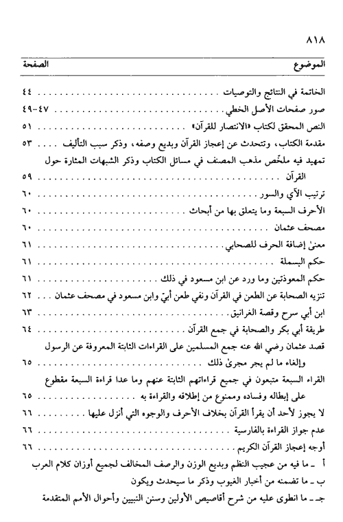 نبذة الناشر:أصل الكتاب أطروحة جامعية تقدم بها الباحث إلى تخصص التفسير وعلوم القرآن بدائرة العلوم الشرعية في كلية الدراسات العليا والبحث العلمي بجامعة القرآن الكريم والعلوم الإسلامية بأم درمان السودان, لنيل درجة الدكتوراه, وحصلت على درجة ممتاز. ويبحث الكتاب في ترجمة الإمام الباقلاني, تحقيق اسم الكتاب الانتصار للقرآن وسبب تأليفه للكتاب ...والداعي لذلك ومن أبرز الأمور التي دعت الباقلاني إلى تأليف هذا الكتاب ظهور فرق في عصر المؤلف كان همها الطعن في القرآن والتشكيك فيه, وفي صحة نقله وخلوه من الخطأ واللحن, فانبرى لهم الباقلاني مفنداً لمزاعمهم داحضاً لحججهم, مبيناً وهاءها وصغارها. وهذه الطعون كما اجملها المصنف دائرة حول قضايا أبرزها: دعوى الزيادة في القرآن الكريم, دعوى النقص منه, دخول الخلل واللحن على النص القرآني, إيرادهم لشبه قد تنطلي على العامة مثل دعوى اللحن في القرآن وأنه كان منذ تنزل القرآن وأن العرب ستقيمه بألسنتها, وما ورد عن ابن مسعود أنه يحك المعوذتين من القرآن. ما يتمسك به بعض طوائف الشيعة من الطعن في بعض الصحابة وأنهم كانوا السبب في ضياع جزء كبير من القرآن. بالإضافة لما سبق, لم يقتصر المؤلف على نقض الطعون التي وجهت إلى القرآن الكريم بل أضاف الى ذلك بحوثاً في علوم القرآن الكريم أوفاها حقها مثل عد الآي وترتيب السور والأحرف السبعة والناسخ والمنسوخ وغيرها من الأبواب. إقرأ المزيد