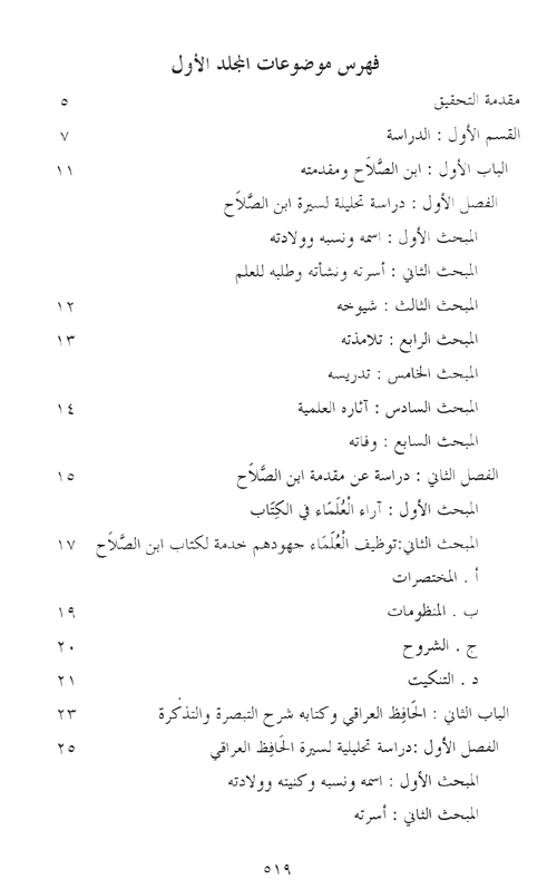 وقد أغنى المحقق الكتاب بدراسة لمقدمة ابن الصلاح ولحياته وكذلك قدم دراسة تحليلية لسيرة الحافظ العراقي ونظرة تحليلية حول كتابه شرح التبصرة والتذكرة. وعلى ذلك جاء الكتاب ضمن قسمين القسم الأول الدراسة، القسم الثاني الكتاب محققاً.نبذة الناشر:كتاب موسوعيّ في علم مصطلح الحديث، له ميزة على غيره من الكتب المتخصصة في هذا المجال؛ لما فيه من دراسات قلّ نظيرها، ولما جمع من استدراكات على أعظم من كتب بهذا المجال وهو ابن الصلاح في كتابه - معرفة أنواع علم الحديث - حيث يعد كتاب ابن الصلاح نواة لهذا الكتاب؛ إذ قام الحافظ العراقي بإضافات واستدراكات وأوضح ما خفي وشرح ما يستحق الشرح، لذا كان هذا الكتاب من أنفس الكتب بهذا المجال. إقرأ المزيد