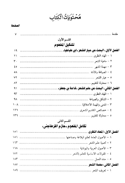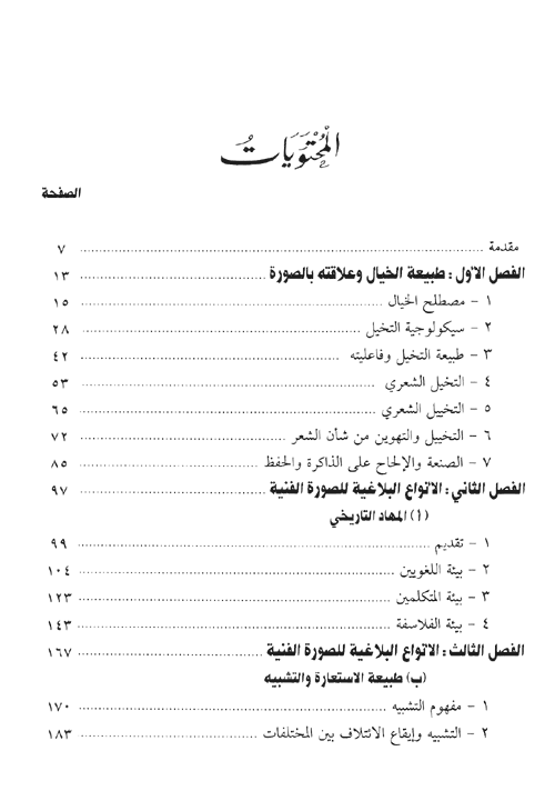 واختار المؤلف لهذه الكتب الثلاثة ناجع من إيمانه بأنها تمثل مجالات أصلية لتحديد الأصول النظرية لمفهوم الشعر، وهي ليست كتباً منغلقة، لا تتجاوب مع المحاولات السابقة عليها أو المعاصرة لها، بل على العكس تحاول المحاولات السابقة والمعاصرة متقيد منها بقدر ما تضيف إليها، تتجاوز في إضافتها وطموحها كل محاولات التأصيل التي يعرفها. أما الموضوع الثاني فجاء تحت عنوان الصورة الفنية في التراث النقدي والبلاغي عند العرب، وفيه تحدث المؤلف عن أربعة عنوانين رئيسية هي طبيعة الخيال وعلاقته بالصورة، أنواع الصور البلاغية، التصوير والتقديم الحسب للمعنى، أهمية الصورة ووظائفها في التصور القديم. إقرأ المزيد