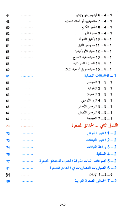 وهذا الكتاب يتحدث عن النباتات ...المنزلية الخاصة, الأوكيدات والنباتات المثمرة والصباريات والنباتات العصارية الأخرى والنباتات البصلية, الحدائق المصغرة اختيار الحوض والنباتات وزراعتها وسقايتها ومجموعة النباتات المورقة الخضراء للحدائق المصغرة, والصباريات العصاريات في الحدائق المصغرة والحدائق المصغرة الترابية, الغابات المصغرة واختيار النبات والحوض والتشكيل والزراعة في الصص وخلطات الأسمدة والتربة والسقاية, النباتات المعلقة ونباتات الصالونات والنباتات ضمن الماء, زراعة النباتات الداخلية والعناية بها الإنارة والحرارة والسقاية وجدول ببعض النباتات الداخلية الشائعة ومتطلباتها, خلطات التربة للنباتات التي تزرع في الأصص والأسمدة والتقليم والقص وإكثار النبات, الآفات والأمراض والطفيليات. إقرأ المزيد