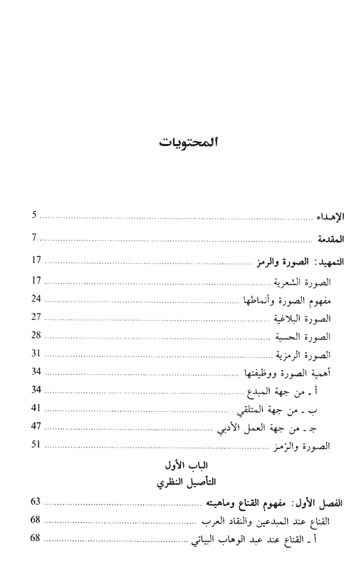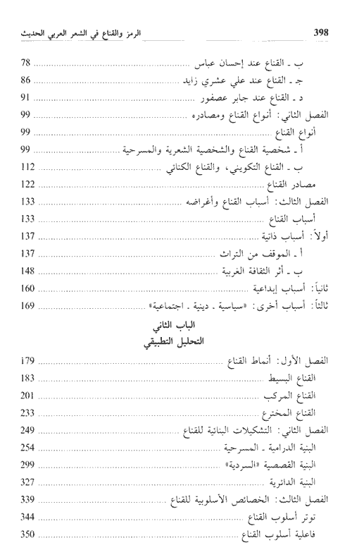 وقد قسمت هذه الدراسة-تبعاً لطبيعتها إلى بابين يضم كل باب ثلاثة فصول إضافة إلى تمهيد يسبقها، ومقدمة الرسالة وخاتمتها. وخصص التمهيد للصورة والرمز، وثم خلاله تتبع مفهوم الصورة وماهيتها، وأنماط ووظائفها، وبما أن القناع أحد أوجه الصورة، والصورة الرمزية منها بخاصة، فقد يعرض التمهيد للرمز، وحاول تحديد مفهوم معين له، وفرق بين الرمز الأدبي وغيره من الرموز والإشارات.