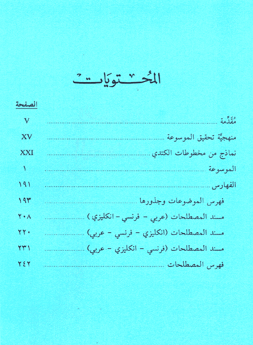 وبالعودة إلى منهجية تحقيق هذه الموسوعة، ومن حيث تنظيم مضامين المصطلحات؛ فإنه تم اختيار الموضوعات الرئيسية الجلية والتي تفي بتعريف المصطلح وبيان أبعاده، وأسقطت تلك الغامضة التي اكتنفها اللبس وبدت ثانوية في المصادر المعتمدة، والمحاولة وقدر المستطاع، ونظراً إلى غياب المصدر من بين أيدي القارئ، جعل التعريف مستقلاً متماسكاً ومتكاملاً بحد ذاته. بالإضافة إلى ذلك تم حصر بعض التعريفات بمعنى مفيد منعاً للتطويل، مع إضافة الفاظ أو إيضاحات لإبانة فحواها. وقد استوفيت في المصطلح الواحد معظم تفرعاته، لا سيما تلك المتداخلة معه ضمن حقل دلالي واحد.. إقرأ المزيد
