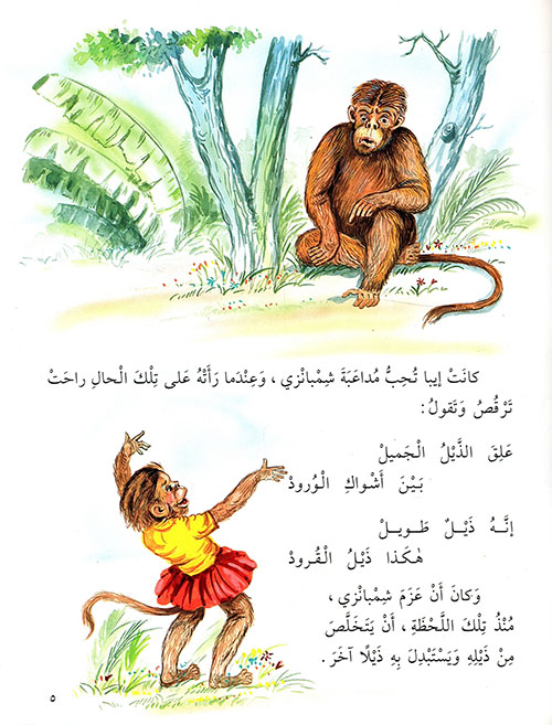 نبذة نيل وفرات:هذه "حكايات محبوبة" رائعة يحبها الأبناء ويتعلقون بها فالصغار منهم يتشوقون إلى سماع والديهم يروونها لهم، والقادرون منهم على القراءة يقبلون عليها بلهفة وشوق، فيتمرسون بالقراءة ويستمتعون بالحكاية، وهم جميعاً يسعدون بالتمتع بالرسوم الملونة البديعة التي تساعد على إثارة الخيال وتكملة الجو القصصي. وقد وجهت عناية قصوى إلى الأداء ...اللّغوي السليم والواضح، وطبعت النصوص بأحرف كبيرة مريحة تساعد الأبناء على القراءة الصحيحة. وهتم كل كتاب بأسئلة تساعد على تنشيط الحصص التعليمية، وتلفت النظر إلى الملامح الأساسية في القصة وتستثير التفكير.نبذة الناشر:يروي هذا الكتاب حكاية شمبانزي خرافي عاش في قديم الزمان، وكان ذا ذيل، لعلك تريد أن تعرف ما حدث لذيله؟ نعم، حاول، ولسبب وجيه، أن يتخلص منه، فراح يعرضه على حيوانات الغابة، الواحد بعد الآخر، وعرضه حتى على حمار. لكن الحيوانات جميعها رفضت عرضه. وكان أن نقم على تلك الحيوانات، وعزم على الانتقام منها. ما الوسيلة التي اعتمدها في انتقامه، وكيف كان رد وحوش الغابة؟ ما المشكلة التي لا يحلها إلا الحمار؟ وكيف كان حكم وحوش الغابة على القرد الذي لم يحترم ذيله؟ سنحب كباراً وصغاراً هذه القصة الطريفة المشوقة، ونتتبع مغامراتها ونضحك مع شمبانزي الحائر الثائر، ونضحك عليه. إقرأ المزيد