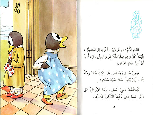 ورغبة في الاستفادة من هذه الغاية التربوية، ومن شعور الطفل بأنه جزء من هذا الجو المحيط به، فقد أوثر أن تخاطب الشخصيات، على مدار الحكاية، مخاطبة العاقل. إقرأ المزيد