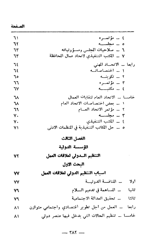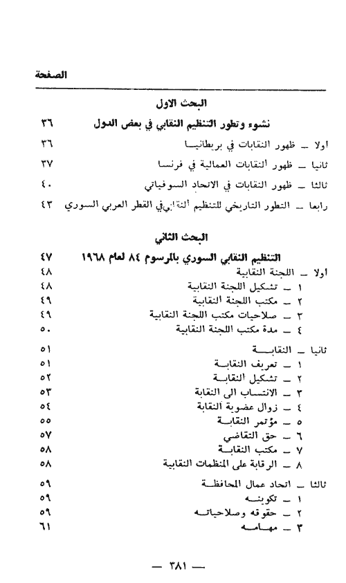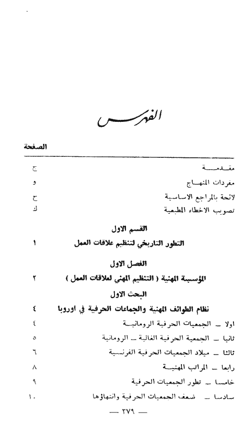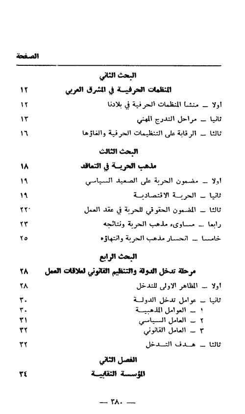 وهذه المؤسسات هي التالية: المؤسسة التاريخية أو التنظيم المهني لعلاقات العمل. المؤسسة النقابية أو الإسهام النقابي في تنظيم علاقات العمل. المؤسسة الدولية أو التنظيم الدولي لعلاقات العمل، المؤسسة التشريعية، أو التنظيم القانوني لعلاقات العمل، أما القسم الثاني فافرده ليشرح فيه علاقات العمل وفقاً لأحكام القانون رقم 91 لعام 1959، النافذ في القطر العربي السوري، وبالتالي تحدث عن الأحكام القانونية العامة لعقد العمل الفردي، آثار عقد العمل وتنظيم علاقاته، وقف وانتهاء عقد العمل والآثار المترتبة عليها المنازعات والتحكيم في عقد العمل. إقرأ المزيد
